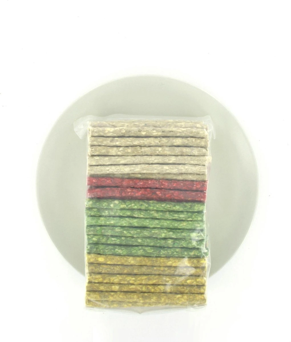 | Voedingswaarde | Gesnipperd bindweefsel van runderhuid met tapioca (Aziatische zetmeelknol, vergelijkbaar met aardappel). Kauwhardheid: 2 |