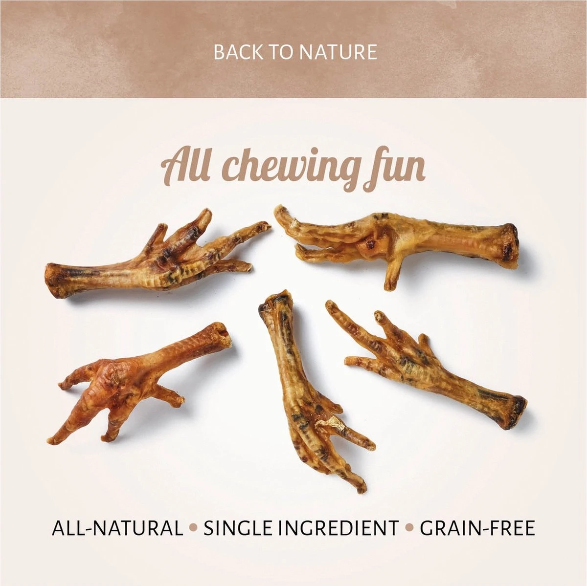 Antos Kippenpoten Gedroogd zijn kleine kippenpoten – 100% natuurlijk en vrij van toevoegingsmiddelen. Grote zak vol bruine kippenpoten geeft extra veel kauw- en snackplezier.