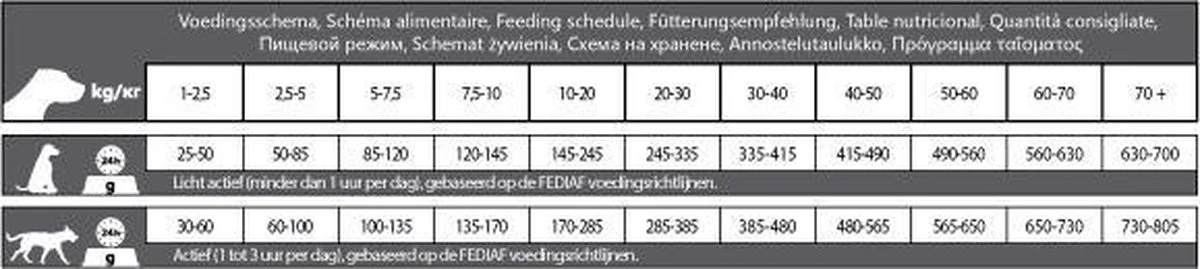 Ingrediënten: Granen (maïs 37%, rijst 26%), vlees en dierlijke bijproducten (gedehydreerd lam 18%), oliën en vetten, plantaardige bijproducten, plantaardige eiwitextracten, gist, mineralen.