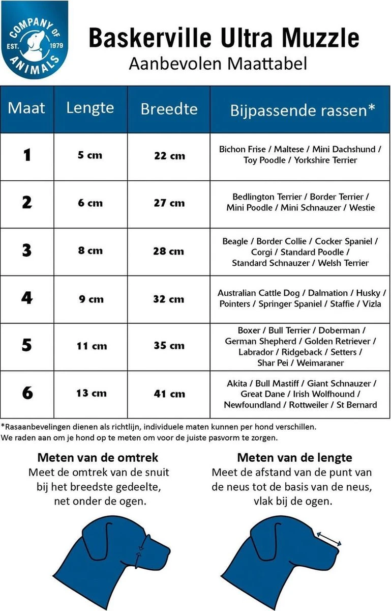 Deze Ultra Muzzle muilkorf van Baskerville is ontworpen voor maximale veiligheid en comfort voor de hond. Het materiaal is buitengewoon sterk en duurzaam, en toch buigzaam en zacht. De veiligheidsband zorgt er voor dat de muilkorf op zijn plaats blijft en beschikt over twee extra punten voor veilige bevestiging. De muilkorf kan aan de normale halsband gekoppeld worden door de lus aan de onderkant van de muilkorf. Door het speciale ontwerp is het mogelijk om de hond snacks te geven, bijvoorbeeld tijdens de training.