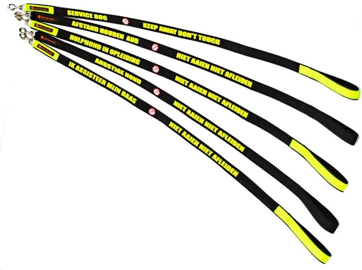 Hondenriem Met Tekst HULPHOND IN OPLEIDING – NIET AAIEN NIET AFLEIDEN 1.3m