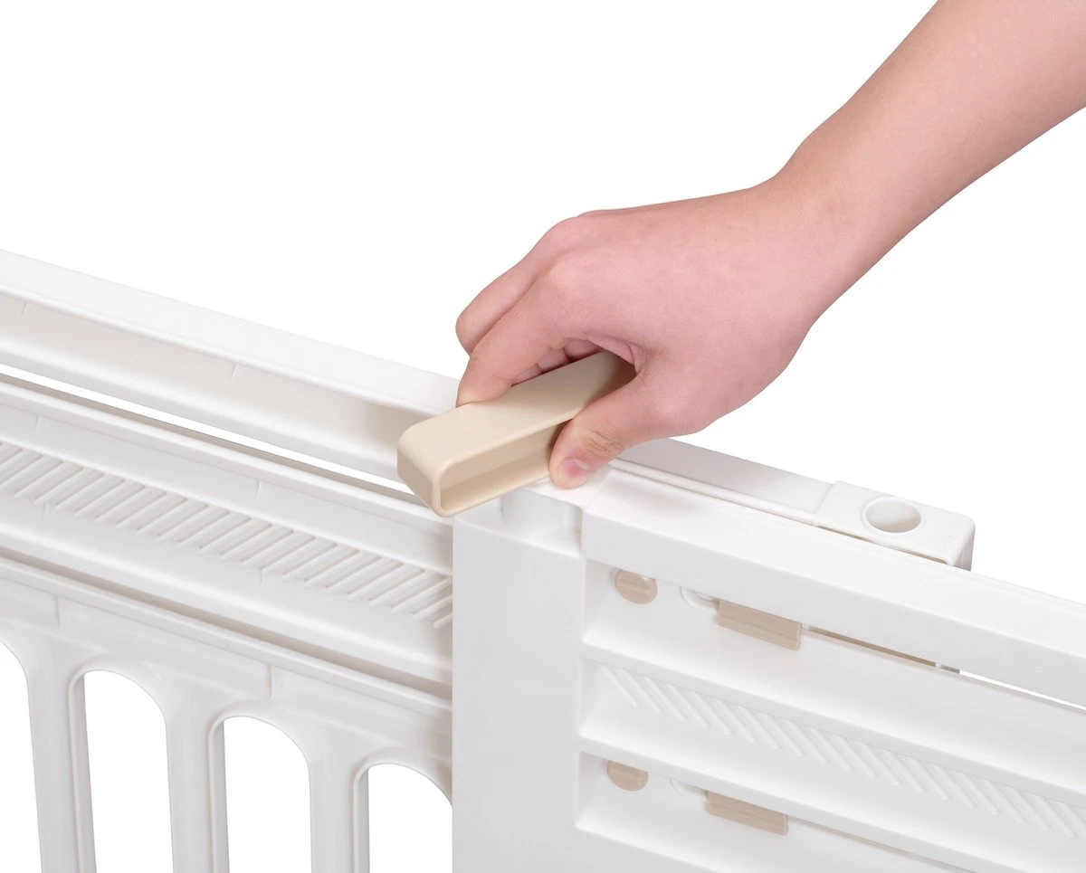 Beperk de toegang tot delen van je huis met deze barrière. Het hek is uitschuifbaar tot 100 cm, waardoor je deze op maat kan maken voor jou situatie. De pads aan elke kant van de barrière houden het perfect op zijn plaats en voorkomen dat je muren beschadigd raken. Doordat het hekje van kunststof is het eenvoudig schoon te maken. Het lichte materiaal van de barrière maken het gemakkelijk te verplaatsen en op te bergen waar weinig ruimte is.
