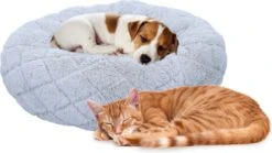 Het ronde kussen heeft een diameter van circa 46 centimeter en is zo’n 13 centimeter hoog. Dat maakt hem geschikt voor katten en diverse soorten kleine honden of je puppy. Dankzij de opstaande rand kan je hondje of kat zich hier lekker in nestelen, wat extra geborgenheid geeft.
