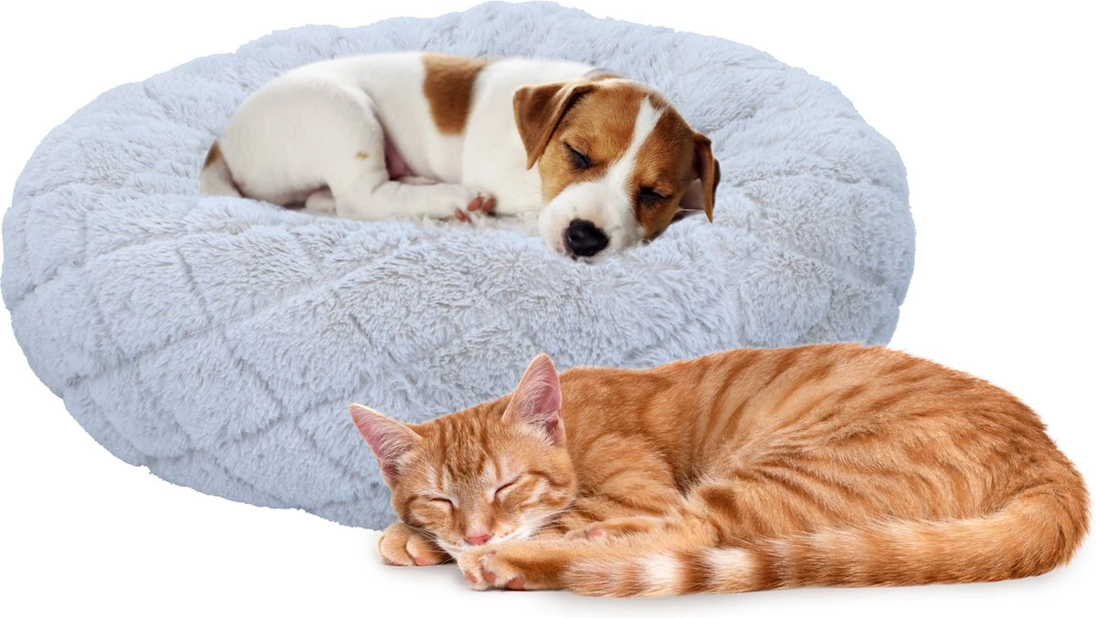 Geef honden of katten een heerlijke slaapplaats met deze zachte, grijze dierenmand van Pet. Noem het een hondenmand of kattenmand, katten- of hondenkussen, bed of zelfs donut; dit is gewoon verwennerij van je huisdier.