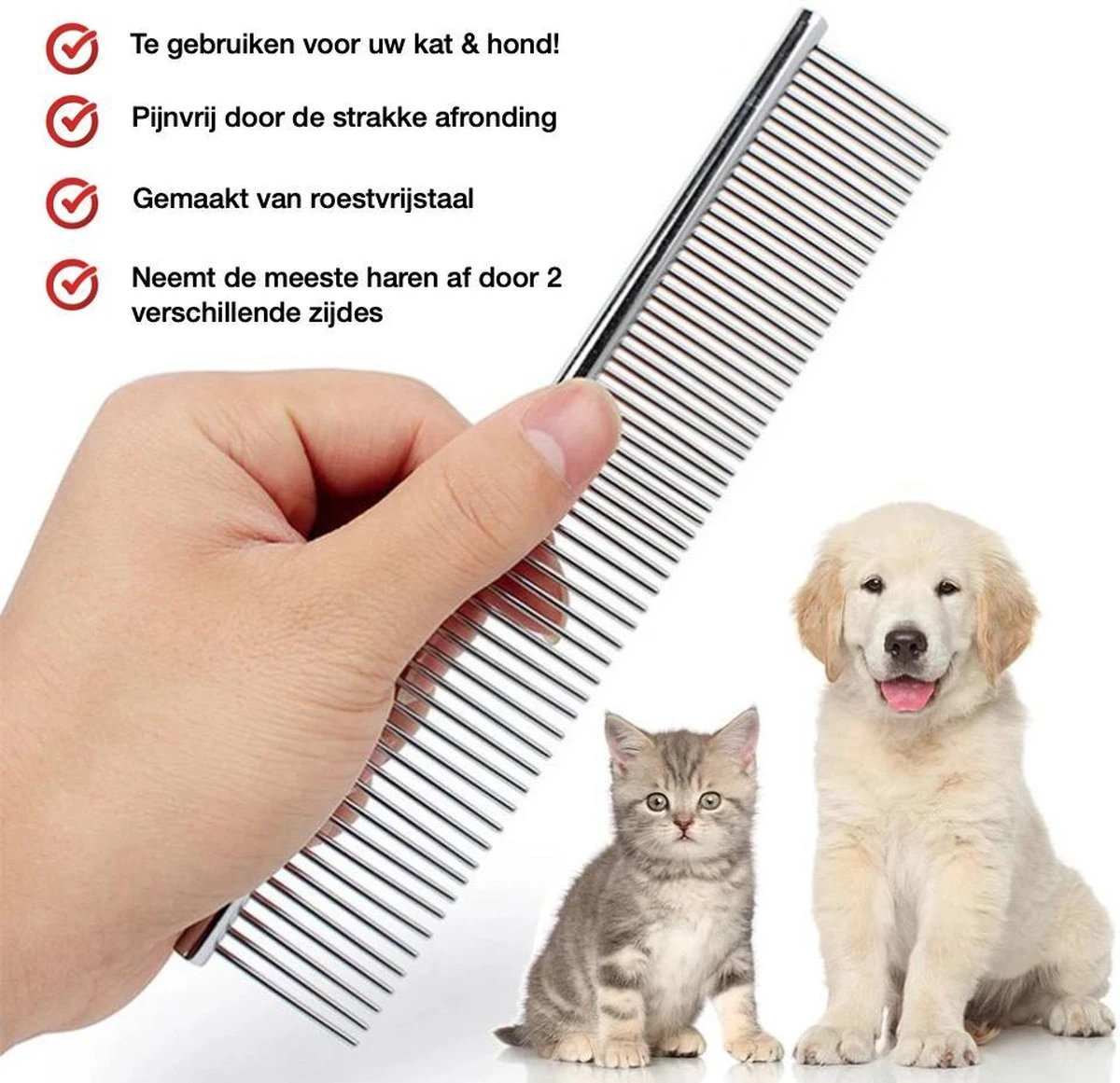 Merkloos Anti-Klit- Kam – Haarverwijderaar Voor Huisdieren – Pijnloos – Roestvrijstaal – Huisdiervriendelijk