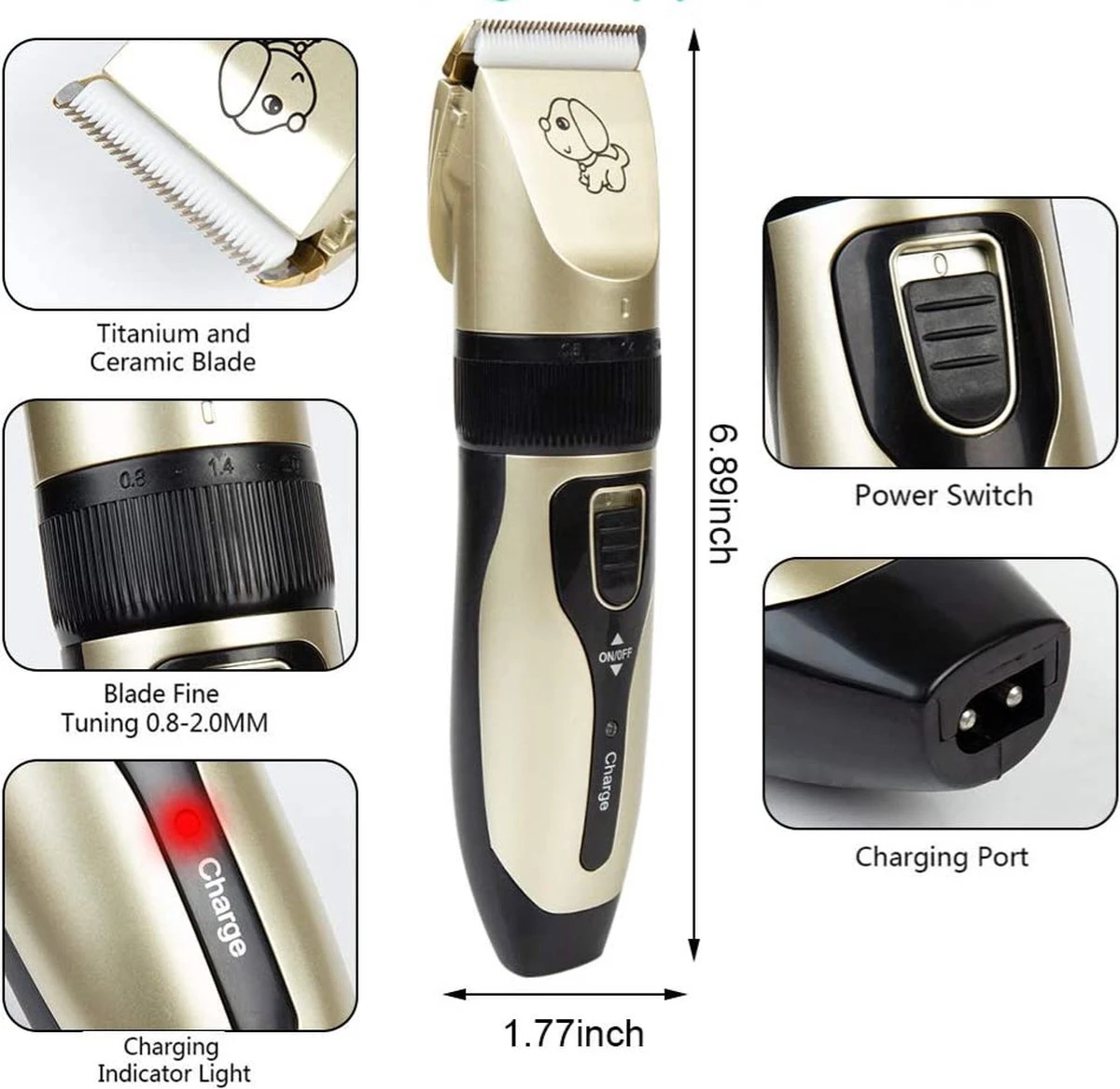Merkloos Professionele Dierentondeuse – Scheerapparaat Voor Honden En Katten – Trimmer – 4 Opzetstukken – Oplaadbaar – Draadloos – Stil – Verschillende Haar En Vachtlengtes – Haartrimmer – Hondentrimmer – Honden Trimmer – Honden Knippen – Haren Knippen