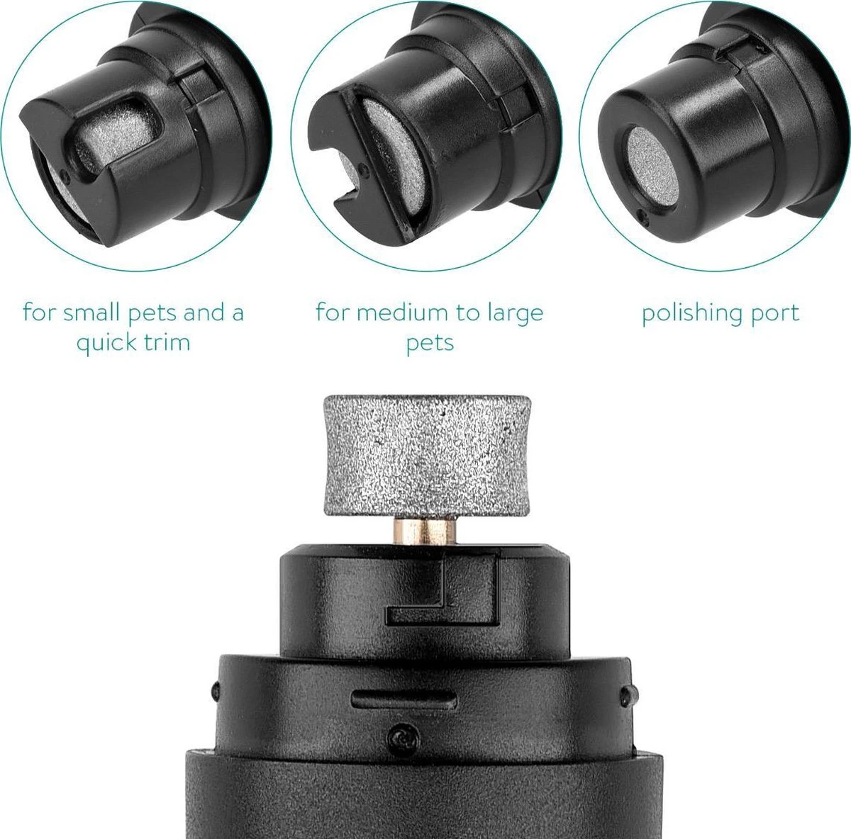 - Voor de veiligheid van de poot of snavel van je huisdier, mag je het apparaat NOOIT langer dan 5 seconden op één plek plaatsen. Let ook op de hoek! Extra veilig: de kapjes zorgen ervoor dat de nagels niet te kort gevijld worden.