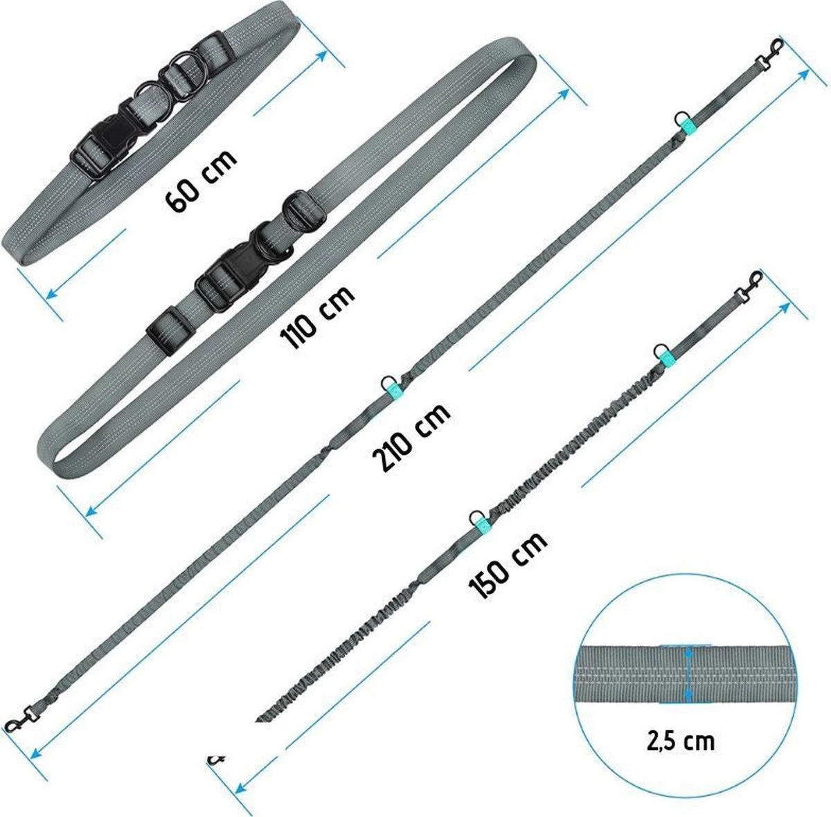 Oak’s First Elastische En Diervriendelijke Looplijn Met Heupriem – Hondenriem – 150cm/210cm – Grijs