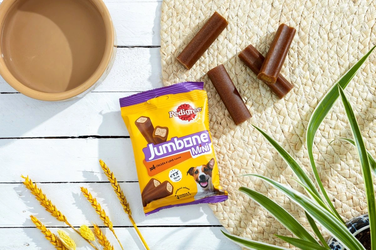 Jumbone is een heerlijke, vlezige kauwstaaf voor de hond, die lekker lang zijn smaak behoudt.
