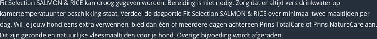 De producten van Fit Selection zijn net als alle andere Prins producten samengesteld met hoogwaardige en goed verteerbare ingrediënten. Fit selection is daarmee een gezonde en complete gezondheidsvoeding welke zeer geschikt is voor de familiehond. Deze smakelijke en krokante brok is er in 2 varianten, Kip&Rijst en Zalm&Rijst.