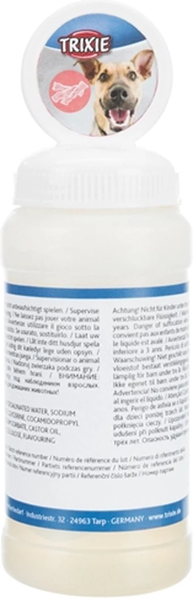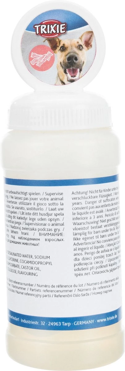 De Trixie Bellenblaas Met Baconsmaak 120 ml is een bellenblaas speciaal voor de hond, met heerlijke baconsmaak voor veel actief en lonend speelplezier. Jouw hond zal graag achter de bellen van deze bellenblaas aanjagen om ze te proberen te vangen, vooral omdat ze een heerlijke baconsmaak hebben! Het najagen van de bellen zorgt voor actief tijdverdrijf samen met jouw viervoeter dat jouw hond actief houdt en verveling tegengaat.