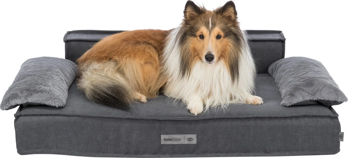 Trixie Sofa Liano Rechthoek Grijs 100 x 60 cm is is een luxe mand voor de hond, een hondenbank met rug- en armleuningen, schuimvulling en anti-slip onderkant. In luxe luieren doet jouw viervoeter met dit mooie bed van Trixie. Deze Liano sofa is net een echte bank, met een rugleuning en stevig genaaide kussens als armleuning. Heerlijk om tegenaan weg te kruipen of de kop op te laten rusten. De bank zelf bestaat uit een kussen bekleed met geweven stof en gevuld met vormstabiele polyestervlies vulling die heerlijk zacht is. De hoes is afneembaar en wasbaar voor een langere levensduur en de onderkant is anti-slip, om verschuiven bij het opstappen te voorkomen.