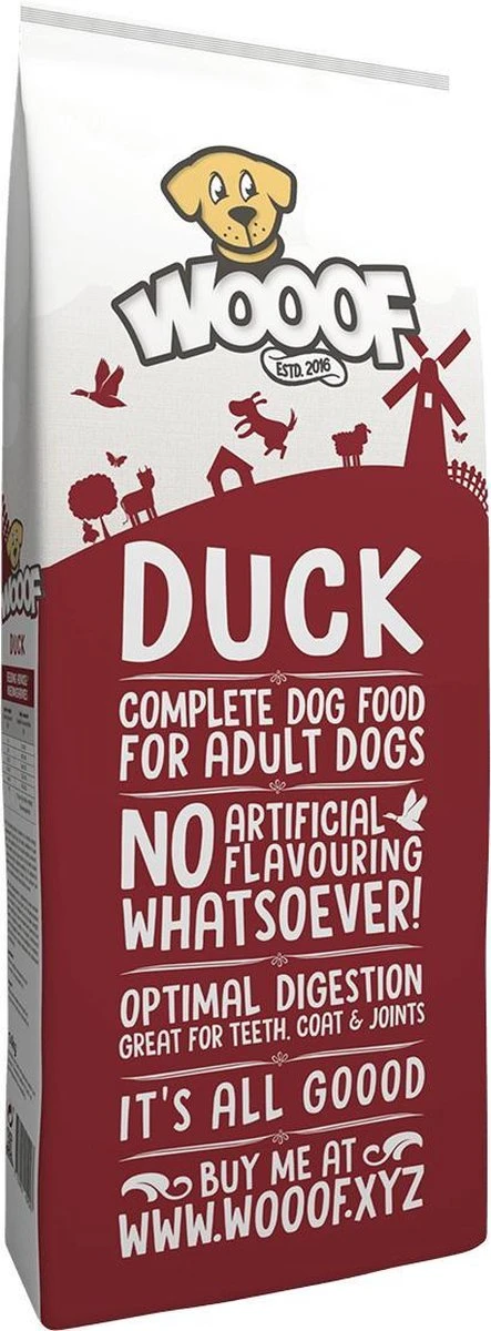 WOOOF Eend 18KG – Geperst Hondenvoer – Hypoallergeen Hondenvoer – Geperste Hondenbrokken – Droogvoer